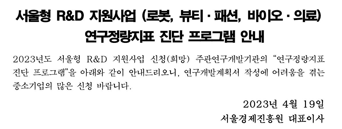 "2023년 서울형 R&D 지원사업 연구정량지표 진단 프로그램 안내" 상세내용