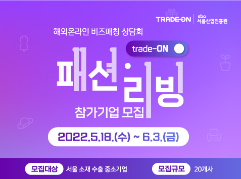 서울산업진흥원에서는 수출 중소기업의 해외시장 진출지원의 일환으로 「패션/리빙」 분야 해외온라인 비즈매칭 상담회를 개최합니다.