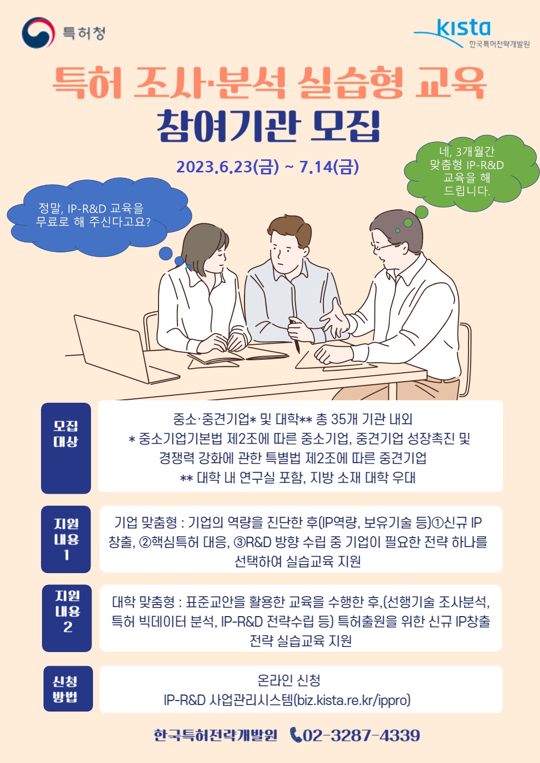 [유관기관][한국특허전략개발원] 2023년 특허 조사·분석 실습형 교육과정 참여기관 모집 공고 안내(~7.14.(금))