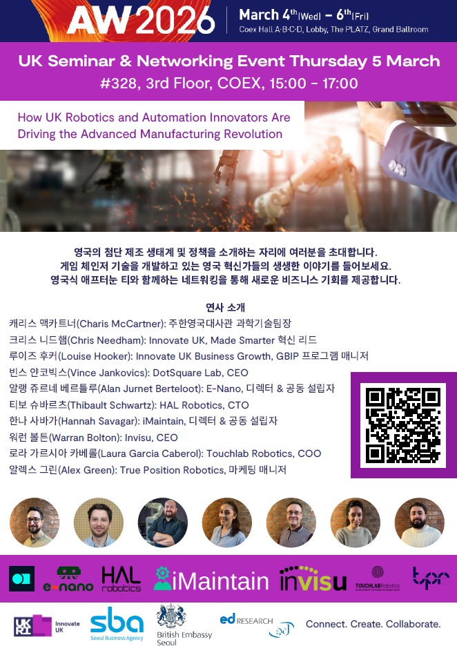 - 행사명: How UK Robotics and Automation Innovators Are Driving the Advanced Manufacturing Revolution